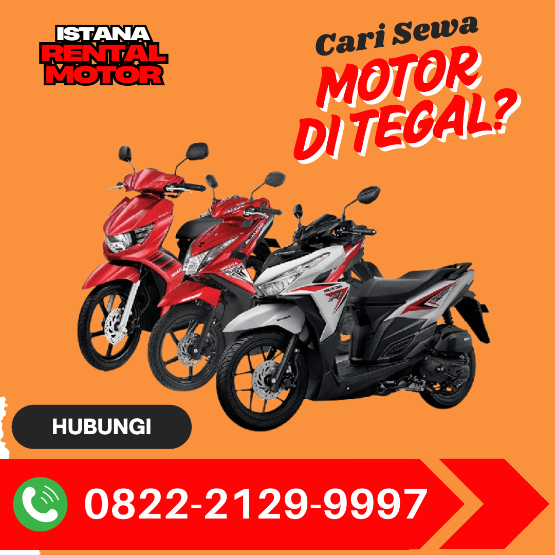 Jangan ragu untuk menghubungi Istana Rental Motor di nomor 0822-2129-9997 untuk mendapatkan pengalaman sewa motor Tegal yang terbaik. Dengan layanan kami, perjalanan Anda di Tegal akan menjadi lebih nyaman dan menyenangkan.