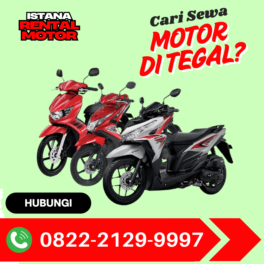 Jangan ragu untuk menghubungi Istana Rental Motor di nomor 0822-2129-9997 untuk mendapatkan pengalaman sewa motor Tegal yang terbaik. Dengan layanan kami, perjalanan Anda di Tegal akan menjadi lebih nyaman dan menyenangkan.