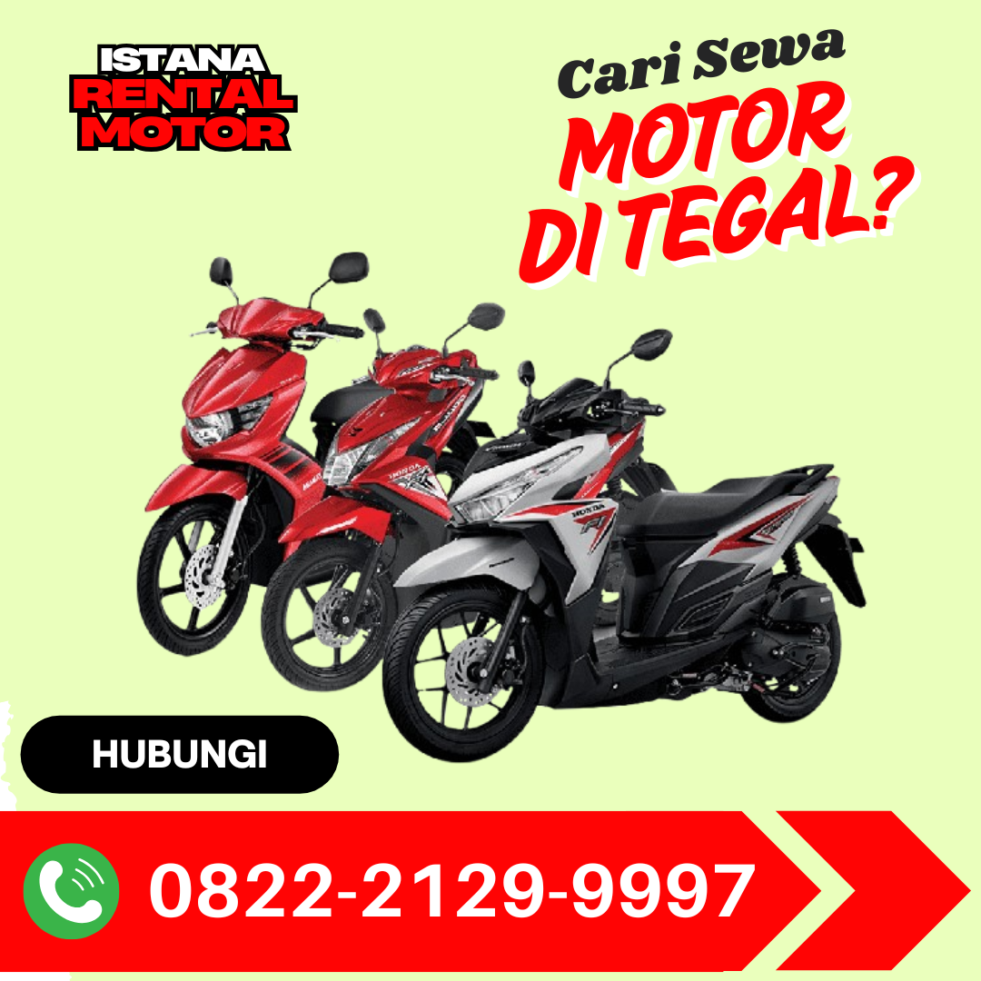 Jangan ragu untuk menghubungi Istana Rental Motor di nomor 0822-2129-9997 untuk mendapatkan pengalaman sewa motor Tegal yang terbaik. Dengan layanan kami, perjalanan Anda di Tegal akan menjadi lebih nyaman dan menyenangkan.